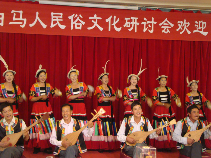 6月21日下午,为期两天的首届中国白马人民俗文化研讨会甘肃文县圆满结束。会议期间,与会人员参观了白马人物质文化遗产的传承、保护及白马人服饰的制作工艺和生产生活情况,观看了《池哥昼》、《面具舞》、《火圈舞》等白马民俗文化表演,并对白马民俗文化的挖掘、整理、保护等各项工作进行了专题调研。在白马人民俗文化研讨会上,对白马民俗文化的挖掘、整理、保护等各项工作进行了深入的学术交流和讨论。