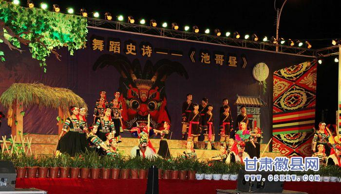 为更好地传承非物质文化遗产,守护白马人精神家园。10月26日晚,由陇南师专主办,文县政府承办的大型音乐舞蹈史诗-----“池哥昼”巡演第三场在礼县会展中心礼堂演出。
