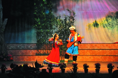 陇南师专党委书记赵文博,校长司跃宁,陇南师专报主编张益斌,县委副书记郭省军,政府常务副县长刘景原,县委常委、宣传部长赵双龙,人大主任刘兰君等县上领导及文体、广电政府办单位负责人与800多名观众一起观看了演出。赵双龙代表县四大班子致欢迎辞。演出由序幕、池哥之祭、白马国殇、哒嘠恋歌、祈祝丰年、尾声六部分组成。