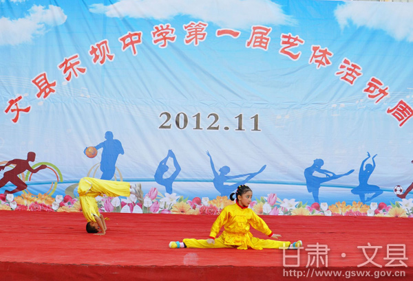 为了进一步丰富校园文化生活,营造和谐向上、格调高雅、文明健康的校园文化氛围,为广大学生创设发掘自身潜力、展示个性特长的平台,近日,文县东坝中学举办了首届艺体周活动。县委常委、纪检委书记高玉龙,县人大副主任杨雪红,政府副县长张喜琴,政协副主席李寿禄,县教育局负责人,城关中学、城关一小、城关二小校长参加活动开幕式。