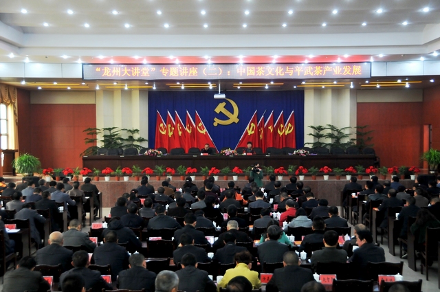 11月13日,平武县委召开中心组学习会议,举办第二期龙州大讲堂,邀请国内资深茶艺专家刘秋萍为全县干部作了题为“中国茶文化与平武茶产业发展”的专题讲座。县委副书记、县长李治平主持会议。