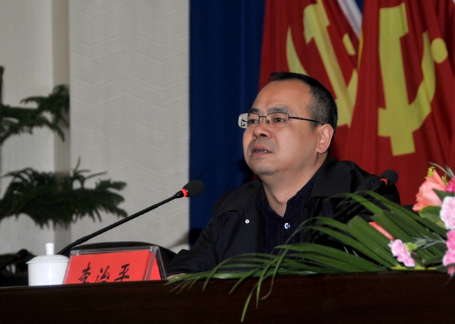 县委副书记、县长李治平主持会议并讲话(胡宇 摄)