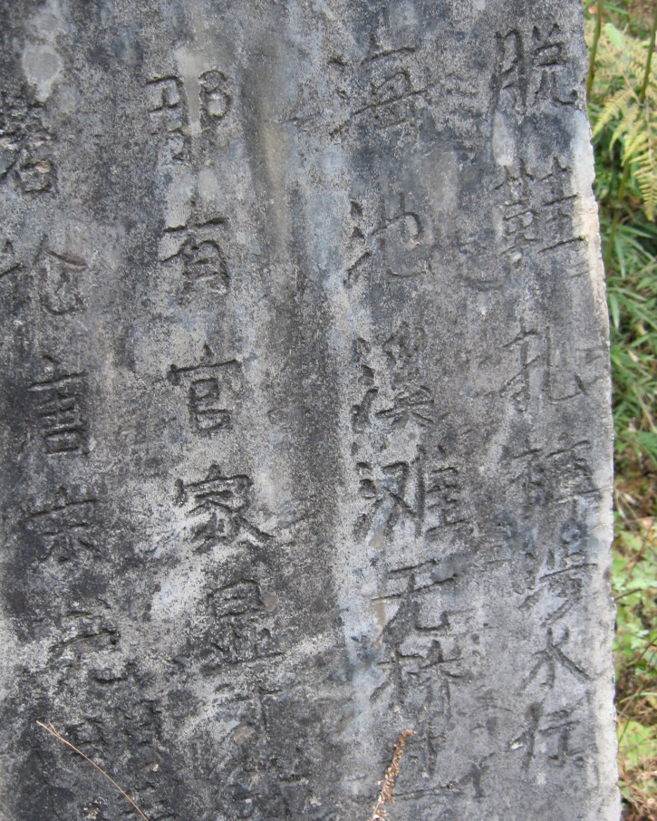 路边的溪上有一座铁索桥,老谭走到了铁索桥的另一头去回来说,桥头的水泥墩子上刻的有诗。我走过去查看,并拍了下来。字刻的歪歪斜斜,像幼体,又像是拿左右写的,代表了当年宝竹岭人民的文化水平。第一句是“脱鞋扎裤涉水行”,我一看就喜欢。一条小路从桥头岩壁的灌木丛下来,一看就知道上面山上还有人户住。山民生活的艰难要远胜于高原牧民,他们在二十一世纪的文明大国治下,但他们的生存状况还是停留在原始时代的。我知道顺溪而下,走到溪水汇入涪江的溪口便是平(武)松(潘)路上的沙坝子,但我不知道路怎样,有多少里。通村路顺着溪水走了不远,便离开溪水开始爬坡了。坡路像是刚修不久,回头线众多,一折一绕一绕一折又上了山。老丁没走有一个回头线,直接爬上了修路倒下的土石方。我跟着爬了上去,某人也跟着爬上去。那是白炭泥堆起的土坡,还有一些松软。某人手脚并用,我和老丁也跟着手脚并用,这才爬上上面公路。宝竹岭首先呈现给我们的是两棵大树。一棵枫香树,一棵叫不出名字的树。那棵枫香树论大,是我平生所见的第三大的树。论高,则是第一高。第一大的是陕西黄帝陵的轩辕手植柏,第二大的是阳朔十里画廊上那棵榕树。我转来转去拍那两棵树,直拍到相机没电。拍那棵叫不出名的大树时,拍到了树的主人,姓徐,七十岁。