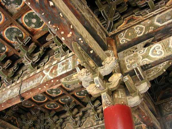 五是报恩寺的建筑斗拱。斗拱是中国古建筑一大特色,世界建筑史上的一大奇迹。建筑上使用斗拱的花样、出跳是有讲究的,而报恩寺的斗拱不仅从数量上、花样上都是全国之最。全寺有奇巧严谨的斗拱36种2000多朵,又有“斗拱博物馆”之称。