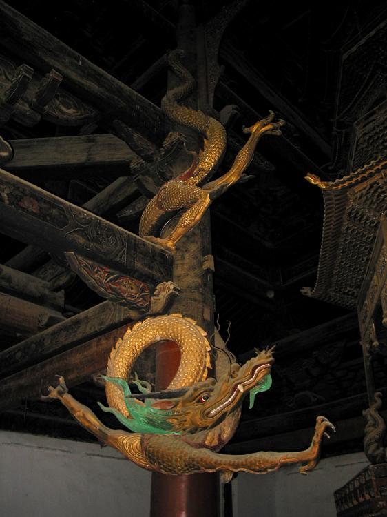 四是报恩寺是群龙聚会的场所。寺内柱额梁枋、天花藻井、脊饰瓦当,乃至香炉、匾额、钟钮等处,或刻或绘,或铸或塑,无处不突出龙的形象。尤以华严殿内长7米的四条泥塑蟠龙最为精美。全寺有九千九百九十九条龙,加上“当今皇帝万万岁”的龙位,共计有一万条龙,又有“深山龙宫”之称。假如你有雅兴,不妨亲自数一数,这些千姿百态的龙,定会使你一饱眼福,增添无穷的乐趣。