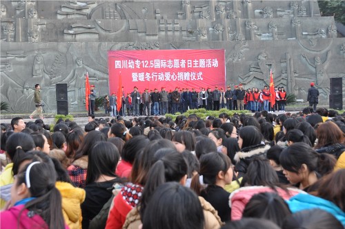 12月5日下午,四川幼专举行“12.5国际志愿者日主题活动”暨“暖冬行动”爱心捐赠仪式。学校领导班子、中层干部、各党总支书记、党支部书记、全体党员志愿者、接受捐赠的同学和师生代表参加仪式。捐赠仪式由组织人事处处长、党员志愿者服务大队队长杨林主持。