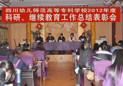 1月13日上午,四川幼专2012年度科研及继续教育工作总结表彰会在西山公园集萃苑隆重举行。党委副书记、校长罗长国,党委副书记、纪委书记罗慧,党委委员、副校长赵波、廖智勇,副校级调研员敬代波以及学校全体中层干部、学术委员会委员、科研中心(室)负责人、受表彰的先进个人和集体代表共70余人参加会议,会议由赵波主持。
