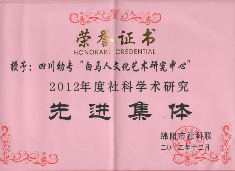 会上同时表彰了2012年度基层社科工作先进集体和先进个人。白马人文化艺术研究中心获得科研工作先进集体称号。