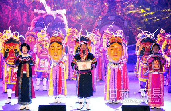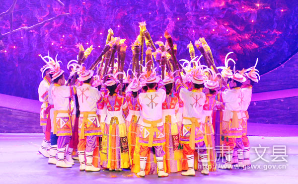 舞台上,“白马人”的先祖,沿着迁徙的方向而来,他们手持牛尾,肩扛刀枪火铳,驱散邪魔,震慑外敌,他们高唱着古老动人的歌谣,送走黑夜,迎来黎明,歌舞不歇,他们引领白马部族,手持火把,跳着“池哥昼”,围猎“杀野猪”…… 7月28 日晚,甘肃文县剧院内座无虚席、掌声不断,全国第一部以文县白马人民俗文化为主题的大型歌舞剧《白马•印记》首场商业正式拉开帷幕,为当地群众和外来游客奉上了一场视觉的饕餮盛宴,赢得在场观众一致好评和高度赞扬。