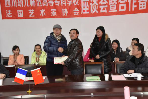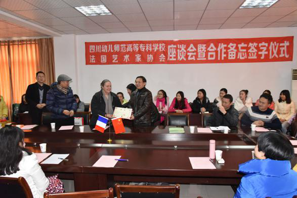 2015年12月21日,法国艺术家协会主席费朗索瓦·伊卡尔女士和电子科技大学蓝马国际艺术研究中心主任吴应鸿教授一行应邀来到四川幼专白马人文化艺术研究中心进行交流。对白马中心近年来所开展的民族文化研究、非遗文化传承和艺术作品创新等工作给予了高度赞赏和肯定,双方就展开白马文化研究与艺术作品创作的深度合作达成共识,并由四川幼专校长王向东代表学校与伊卡尔女士和吴应鸿教授签订了合作备忘录,学校还聘请弗朗索瓦·伊卡尔女士和吴应鸿教授为我校客座教授,并颁发了聘书。学校副校长邓大河、白马中心主任陈强、副主任冯作辉、何明奎等相关领导和负责人参加了签字仪式。随后,伊卡尔女士和吴应鸿教授分别在学校艺术中心举办了专题讲座,得到师生的热烈欢迎!