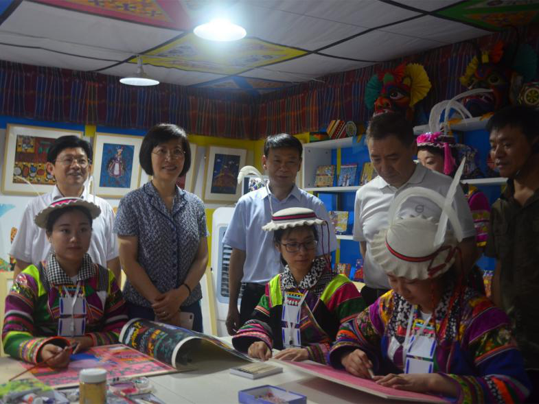 教育部体育卫生与艺术教育司副巡视员万丽君、省人民政府参事王康、省教育厅副巡视员王嵩建、省教育厅体育卫生与艺术教育处副处长唐克红等到我校工作坊视察指导,听取了校长王向东作的相关汇报,对我校在民族文化传承创新方面作出的努力和取得的成绩给予了充分肯定。此次优异成绩的取得标志着我校艺术教育、研究和民族文化传承创新迈出坚实的一步。