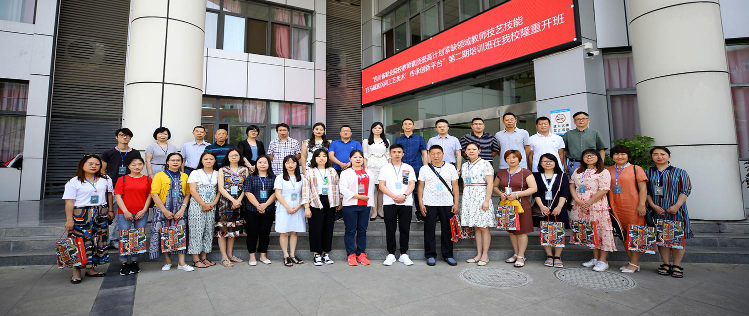 2019年6月3日上午,四川省首批职业院校紧缺领域教师技艺技能传承创新平台白马藏族民间工艺美术传承创新第二期培训班开班典礼在西校区举行。四川省教师培训项目办公室职教项目负责人鄢春苗、绵阳市教育和体育局高等教育科科长李小宏、学校副校长邓大河、科技处、艺术系、学前教育一系、继续教育中心、川西北民俗文化研究中心等部门负责人以及20名培训学员参加开班典礼。科技处处长陈强主持开班典礼。