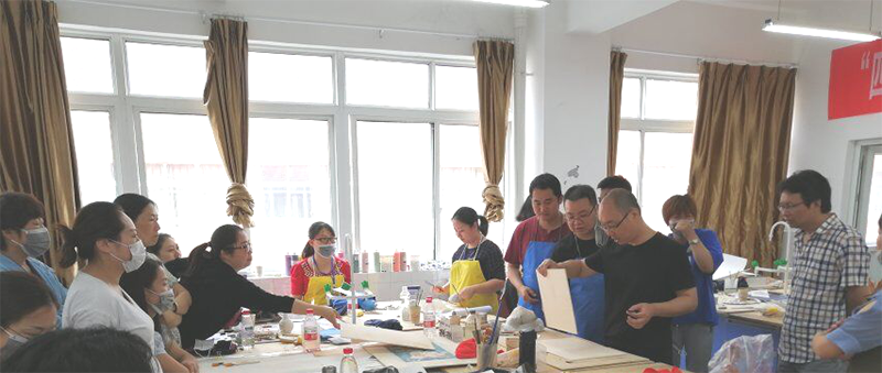 讲座以漆质语言和漆技艺为特征,结合当代艺术精神和设计思维方法,探讨漆画艺术语言和形式表达,指导学员如何进行艺术本体的挖掘和当代漆艺术的创作实践。内容丰富充实,让很多第一次接触漆画的学员收获良多。