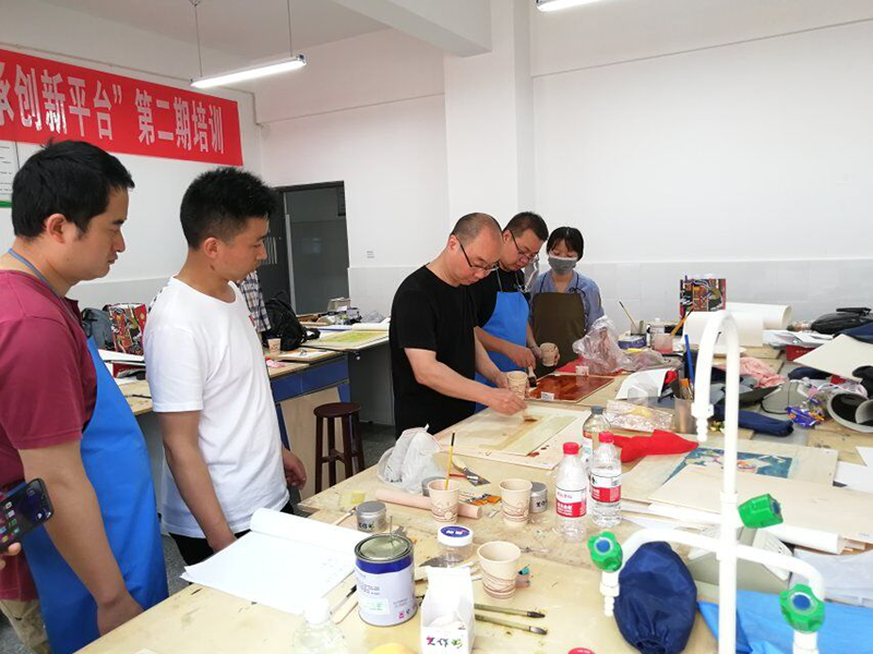 通过对漆画的学习和制作,成员们对于创作漆画产生了非常浓厚的兴趣,大家都表示虽然培训短暂,但是会将漆画的创作技艺带回到各自的单位,未来将在教学和实践中继续对白马藏族题材的漆画进行创作与探索。