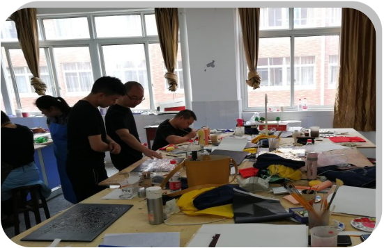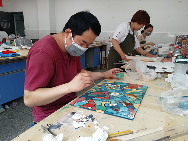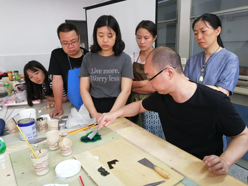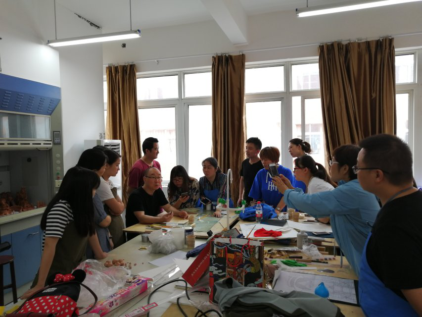 6月9日至6月10日上午,来自四川美术学院手工艺术学院漆艺系系主任、研究生导师蒲江教授,为平台成员们进行了漆画制作流程的讲座。虽然,成员们绝大多数都没有接触过漆画这一画种,但是,蒲老师以深入浅出的讲授,迅速点燃了各位学员的热情。当成员们得知漆画的制作周期长、制作工序复杂后,大家都积极主动加班绘制。在制作的过程中,漆画自身使用的材料的魅力和独特的表现技法,让成员们不断领略到漆画这一门艺术的独特魅力,并且逐渐喜欢上了这门艺术。时间如流水般飞快,转眼到了6月10日中午,成员们依依不舍地和蒲教授告别,结束了本次课程。、