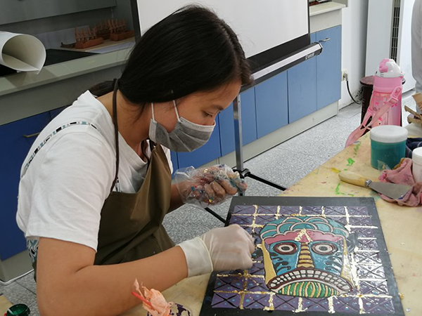 平台学员们认真进行漆画制作