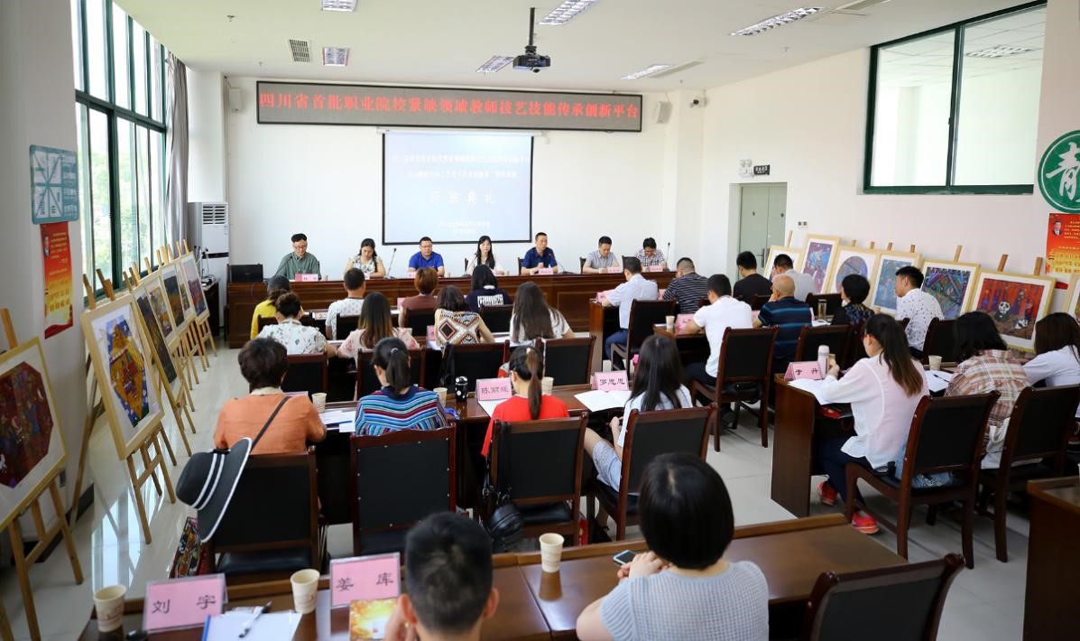 2019年6月3日上午,四川省首批职业院校紧缺领域教师技艺技能传承创新平台白马藏族民间工艺美术传承创新第二期培训班开班典礼在四川幼专西校区举行。四川省教师培训项目办公室职教项目负责人鄢春苗、绵阳市教育和体育局高等教育科科长李小宏、学校副校长邓大河、科技处、艺术系、学前教育一系、继续教育中心、川西北民俗文化研究中心等部门负责人以及20名培训学员参加开班典礼。科技处处长陈强主持开班典礼。