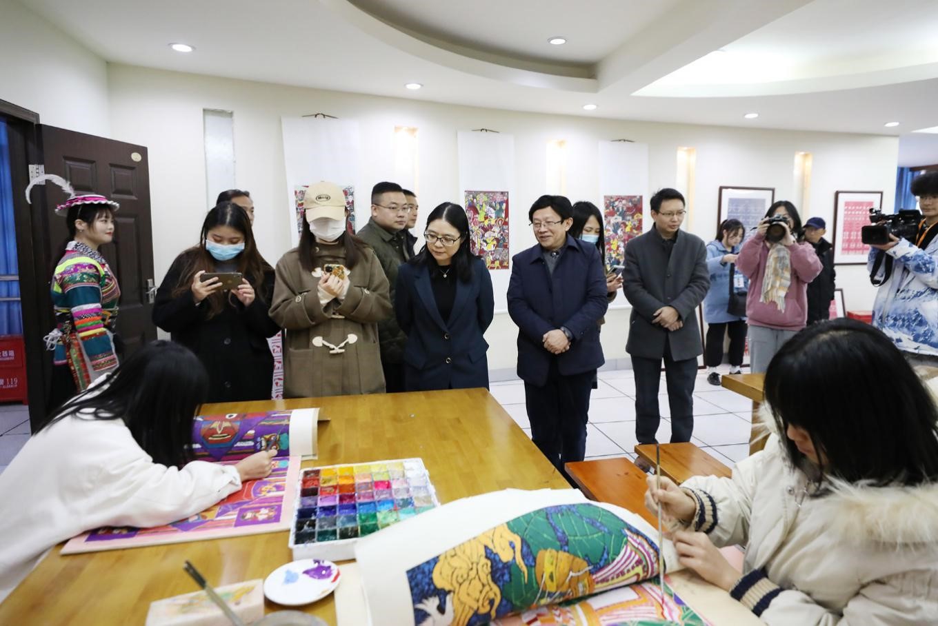 2020年11月24日,绵阳市社科研究基地建设工作培训会在江油召开。参加会议的在绵高校社科(科技)处负责人、省市级社科研究基地负责人、绵州社科菁英等60余人前往四川幼专东校区参观考察白马人文化艺术研究中心。校长王向东、副校长杨林、施春华热情接待考察团队并陪同参观。