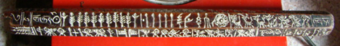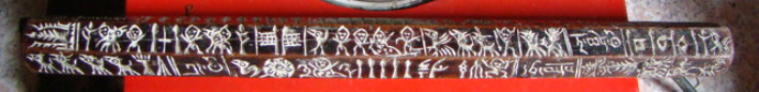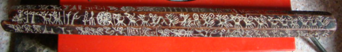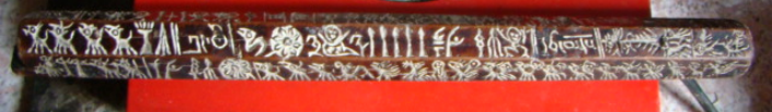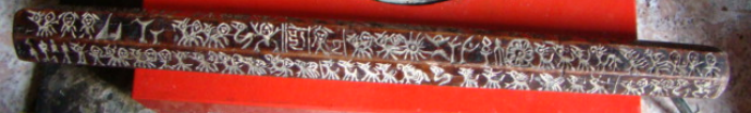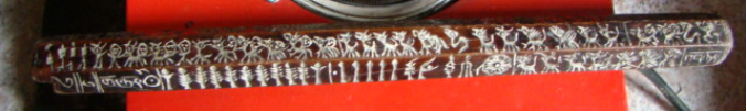 经笔者统计,巴色每一排都有30个左右的图像符号,总共有180个左右。在一根长不过一尺多的木棍上竟然包含着数量如此众多,内容如此丰富的图纹,实在令人惊叹。包括他们所塑造的人、神、鬼世界,居住的自然环境,以及生活中常用的工具(箭)、饲养的家畜、打猎的对象(熊、虎),还有想象中的龙,等等,从而构建起一个内容丰富完整、层次多样的远古时期白马人的生活世界和精神世界。