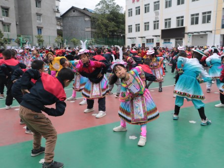 活动中白马歌舞组的孩子唱起白马山歌、跳起圆圆舞,孩子们身穿民族服装展示自己手工作品,丰富多彩的活动不仅锻炼了学生的能力、展现了良好的精神风貌,更让孩子们在传承优秀传统文化中健康成长,在他们心中深埋下一颗坚定文化自信、守护文化瑰宝的火种。