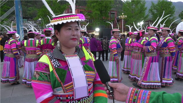 演员田英早说:“今天我们跳起欢乐的舞蹈,唱起欢乐的歌曲,展现我们白马文化,欢迎客人们到我们白马来耍。