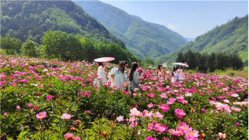 初夏五月,美丽的平武黄羊关藏族乡青山环绕,千亩芍药花盛开,美不胜收。花田里人头攒动,笑声不断,来自各地的游客走进芍药花海,赏花游玩,拍照打卡。