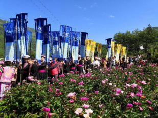 此次采花节再现了当年黄羊关白马藏族群众在花田赏花出游的热闹场景。当天,礼乐队、歌舞队、采花队、赏花队组成巡游队伍敲锣打鼓行走在花海中,场面热闹欢腾。美丽的白马姑娘提着花篮,在芍药花田中一边唱着山歌,一边采摘各种艳丽的花朵,白马藏族服饰和鲜花融为一体,相得益彰,形成了一道靓丽的风景。